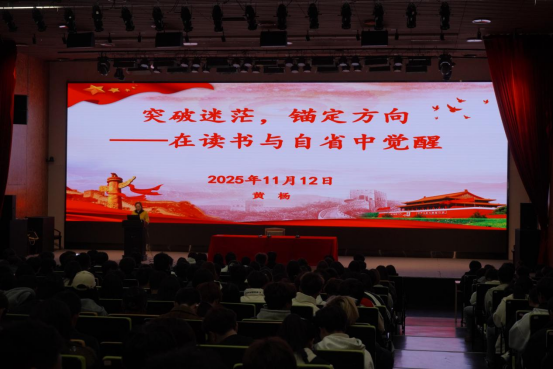 2025年11月12日下午,江苏商贸职业学院通州湾教学区面向全体学生干部举办了一场题为“突破迷茫,笃定方向:在读书与自省中觉醒”的专题培训讲座。本次活动由教学区办公室杨云副主任主持,教学区办公室主任黄杨担任主讲人,旨在引导学生干部明确成长目标,提升综合素养,更好地服务同学、锻炼自我。