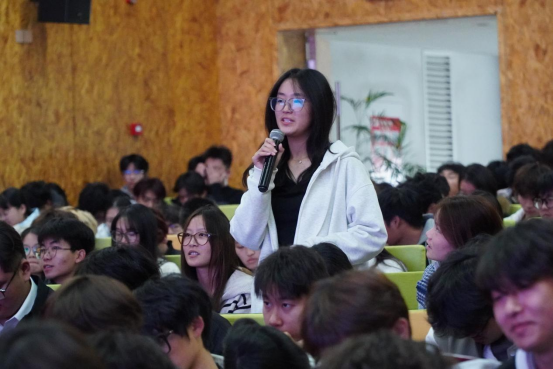 围绕“为何担任学生干部”以及“如何以实际行动接受组织挑选”两个核心问题,黄杨与在场同学进行了互动交流。他肯定了同学们服务集体、提升能力的初心,并指出,学生干部的第一身份是学生,必须首先抓好学业,同时注重学习管理知识、以身作则、规范言行。一个优秀的团队应具备目标共识、良好氛围和有效沟通三大特征,并通过担当实干、追求卓越、讲究方法来实现高效执行与共同成长。